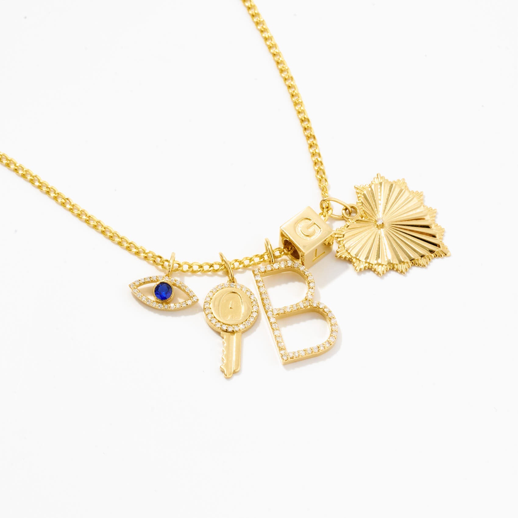 Unser Diamond Evil Eye Charm ist aus feinstem 585er-Massivgold gefertigt und fungiert als Symbol für Schutz und Stil. Dieser aufwendig gestaltete Anhänger verfügt über vierundzwanzig ethisch einwandfreie Diamanten und ein Saphir-Mittelstück, das dem traditionellen Evil-Eye-Motiv Leben einhaucht. Dieses luxuriöse und symbolträchtige Stück ist eine raffinierte Ergänzung jeder Schmuckkollektion.