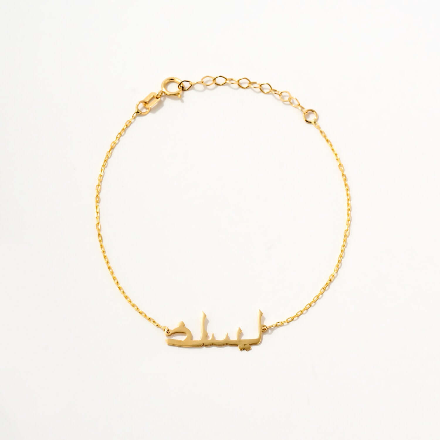 Hergestellt aus 375er massivem Gold, ist unser benutzerdefiniertes arabisches Namensarmband ein einzigartiges und persönliches Geschenk für jede Frau. Dieses Armband, personalisiert mit dem arabischen Namen Ihrer Wahl, strahlt Eleganz und Individualität aus. Ein perfektes individuelles Geschenk, dieses 375er Gold-Namensarmband symbolisiert eine zeitlose Bindung. Ideal für Geburtstage, Jahrestage oder einfach, um "Ich liebe dich" zu sagen. Genießen Sie den Luxus von massivem Gold und die Schönheit der arabischen Schrift mit diesem exquisiten Schmuckstück.