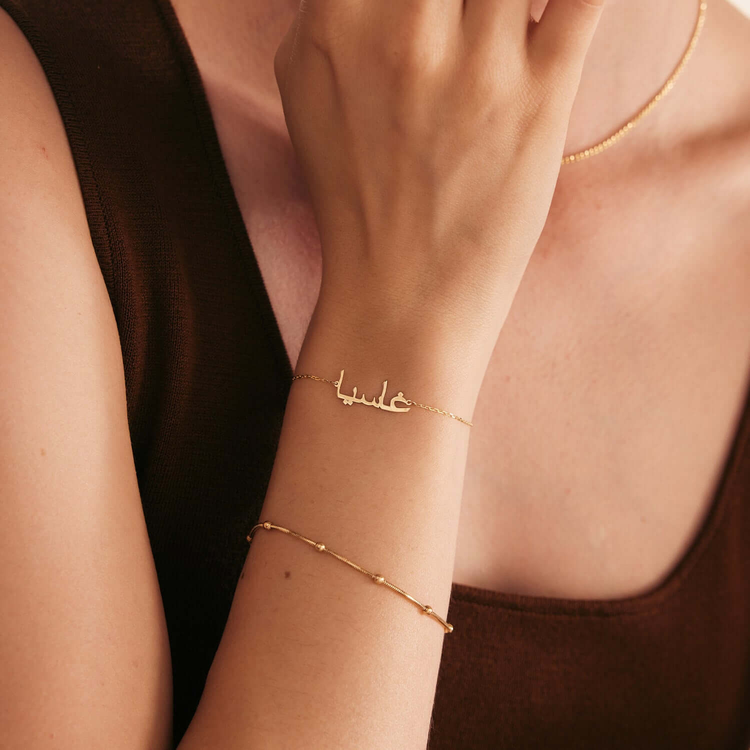 Benutzerdefiniertes arabisches Namensarmband 375er Gold