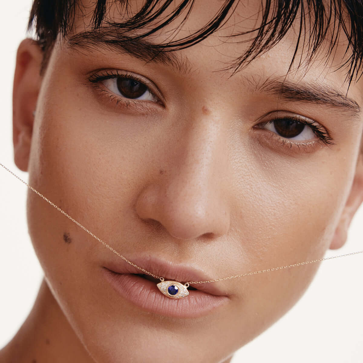 Halskette mit Diamant-Pavé-Böse-Auge und Saphir