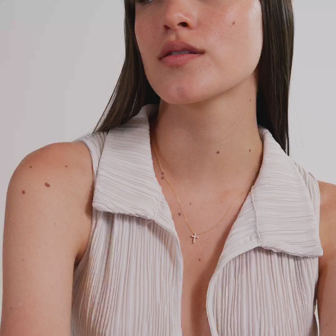 Diamant-Pave-Kreuz-Halskette