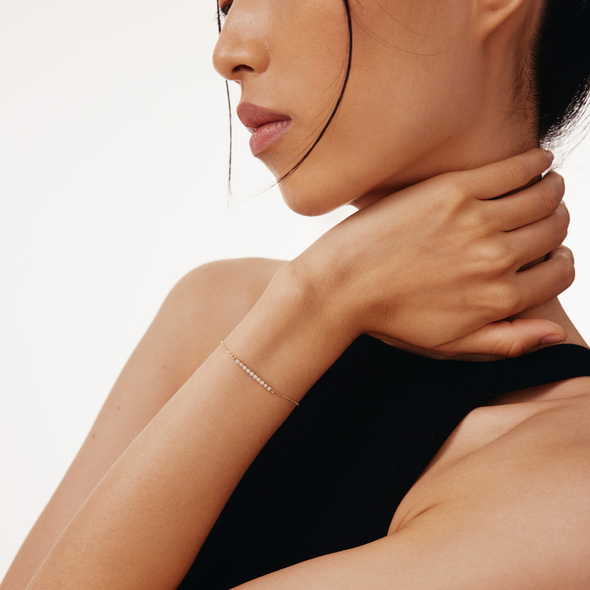 Das Diamond -Armband mit Lünettenset in 585er Gold ist ein atemberaubendes Schmuckstück, das Eleganz und Raffinesse ausstrahlt. Das Armband verfügt über ein zartes Stangendesign aus schimmernden Diamanten, die in einer Blende eingestellt sind und jedem Outfit einen Hauch von Glanz verleihen. Dieses Armband ist aus hochwertigen Materialien hergestellt und ist perfekt für jeden Anlass und macht ein hervorragendes Geschenk für jemanden, der etwas Besonderes ist.